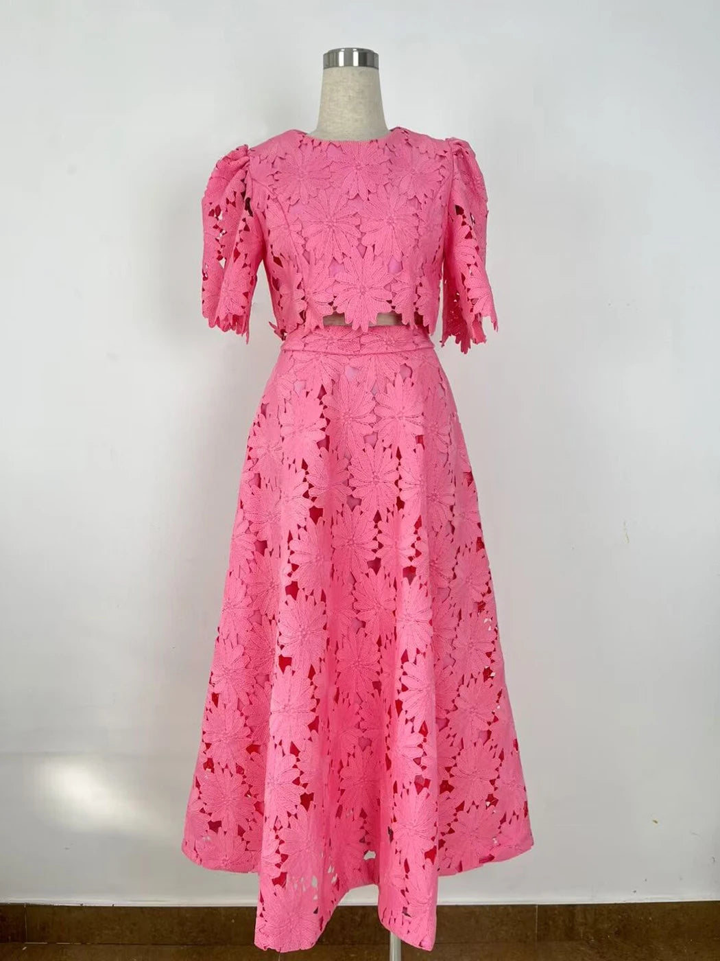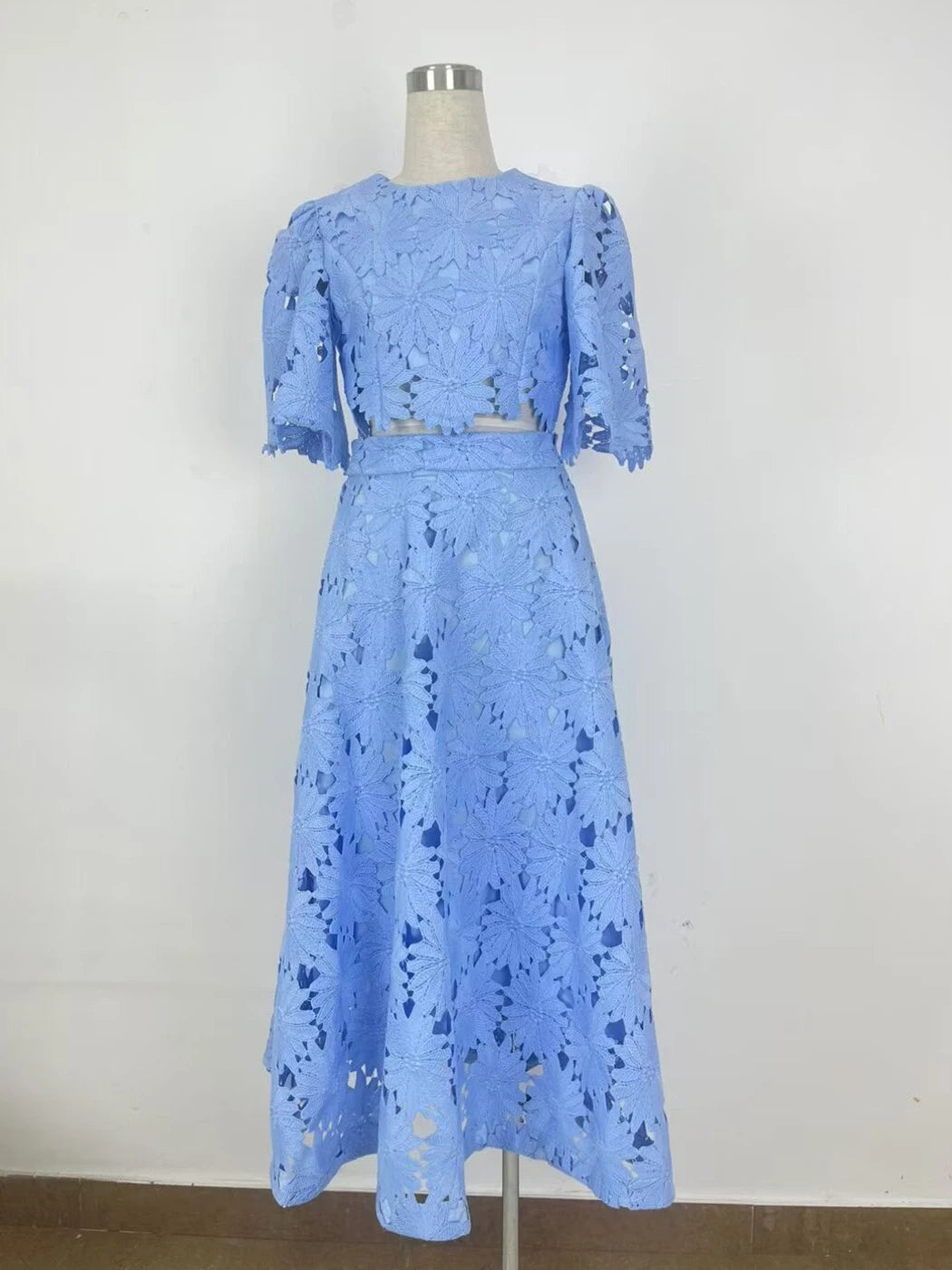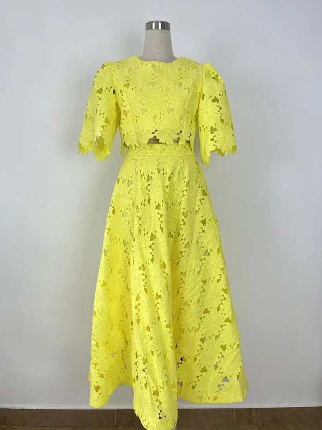 Water Soluble Lace Floral Skirt Set Women Summer Clothes 2025 Boho Long Dress Female Elegant Maxi Two Piece Set Dress Outfits